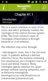 The app Neuroinfect, aims to help in the learning of this complex subject on medicine. The content was developed by a team of neurosurgeons that work at Santa Casa de Belo Horizonte - MG - Brazil and members of Neurosurgery Blog. Composed by the medics: Dr. Mauro Cruz Machado Borgo, Dr. Lucas Alverne Freitas de Albuquerque, Dr. Júlio Leonardo Barbosa Pereira, Dr. José Lopes Filho, Prof. Dr. Gervásio Teles Cardoso de Carvalho, Dr. Paulo Pereira Christo.